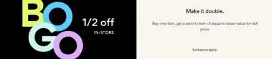 Shop in store and buy one item, get a second item of equal or lesser for half price for a limited time.