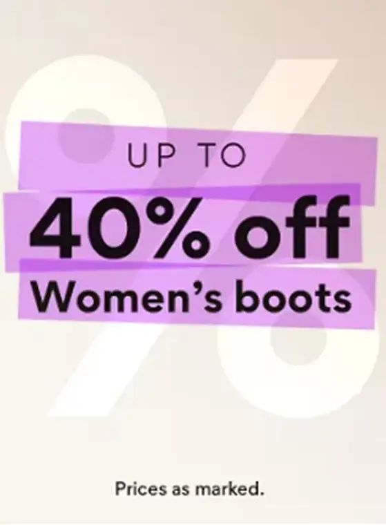 Hurry in and get up to 40% off on women's boots in store.