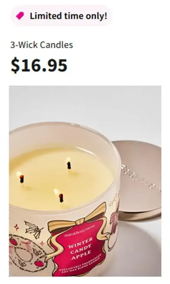 Don't miss out! Shop in store and get 3-wick candles for $16.95.