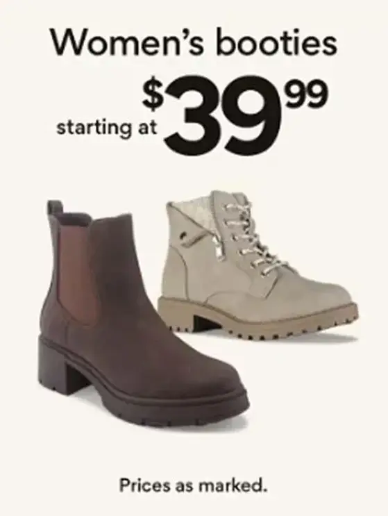 Hurry in and get women's booties starting at $39.99 in store for a limited time.